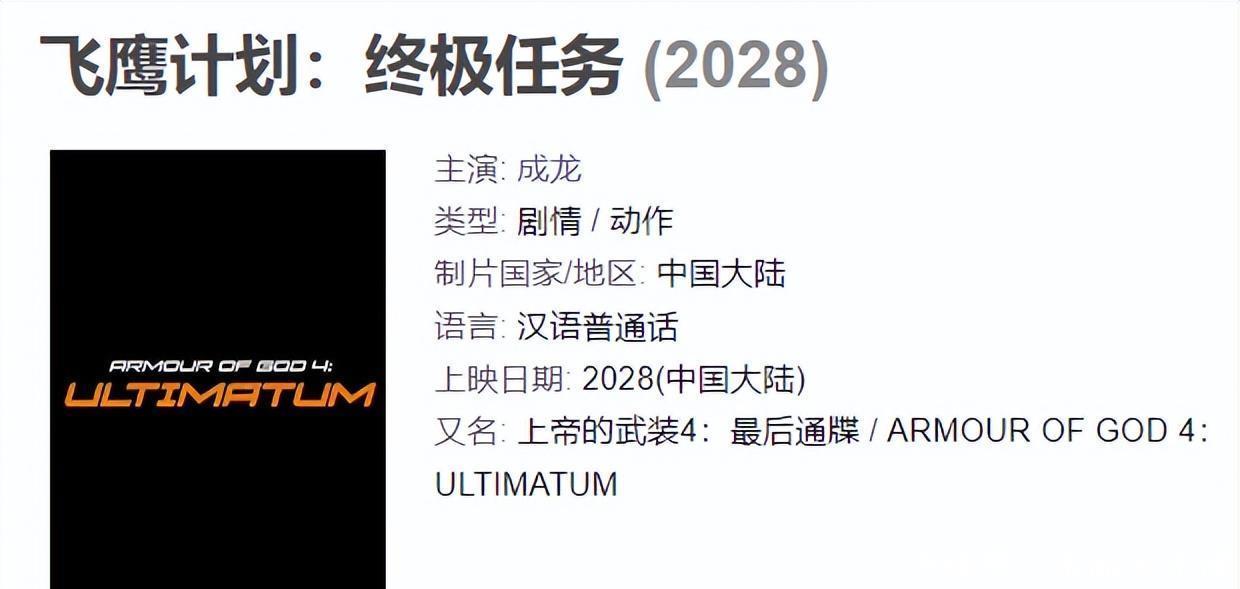 谁说七十岁就该收山?成龙用一部《捕风追影》直接打脸所有质疑——12.65亿票房、8.1分口碑,硬生生把国产动作片的天花板又往上推了一截。观众看得热血沸腾,纷纷喊话:“赶紧拍续集!” 这不,老爷子还真听进去了。刚过完72岁生日,他就放出大招:一口气要连拍五部续集!除了呼声最高的《捕风追影2》,还有《熊猫计划2》《许愿神龙2》《新警察故事2》,以及最让人激动的——《飞鹰计划:终极任务》,也就是大家口中的《飞鹰计划4》。