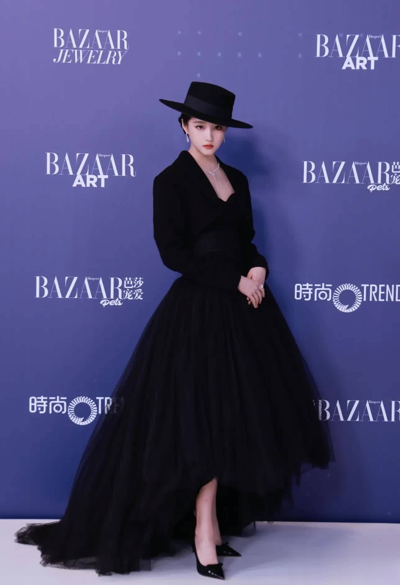 关晓彤身着Maison Chahad定制小黑裙亮相时尚32周年时尚之夜红毯,神秘女伯爵的魅力气息扑面而来,搭配FRED珠宝,尽显优雅高级,宛如暗夜里的璀璨明珠。